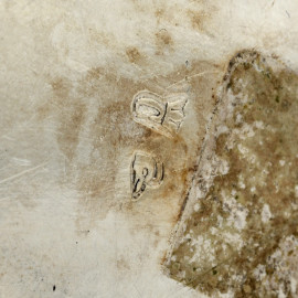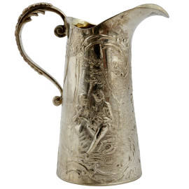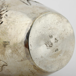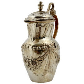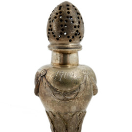 Lotto d i due piccoli versatoi e di uno spargizucchero in argento cesellato e decorato a sbalzo, XIX secolo, altezza massima cm 9, peso lordo gr 150