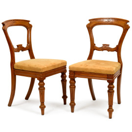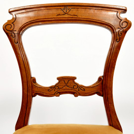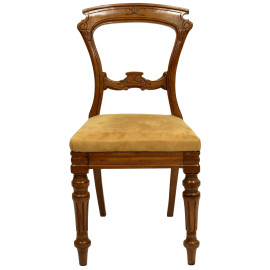 Lotto di 6 sedie in noce con schienale a lira e gambe tornite, sedure removibili in velluto crema, XIX secolo, cm 88x44x47, ( segni di usura)
