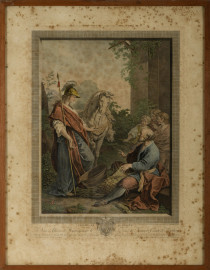 Lotto di cinque stampe, misura massima cm 49,5x54,5, entro cornice, (difetti)
