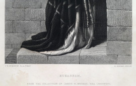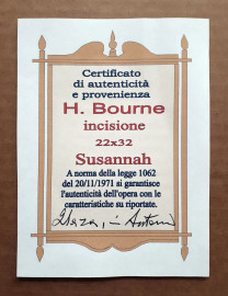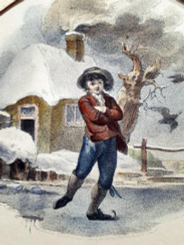 Lotto di due grafiche antiche: J.R. Herbert e H. Bourne (XIX sec.) Susannah, incisione su carta, cm 31x24 e Pattinatore su lago ghiacciato, cromolitografia su carta cm 23x23