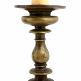 Lotto di due lumi da tavola in legno policromo e bronzo, XX secolo, altezza cm 52, (da revisionare)