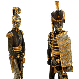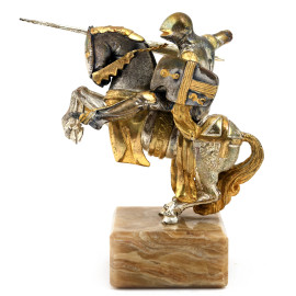 Lotto di due soldati ed un cavaliere in metallo argentato e dorato, altezza massima cm 15