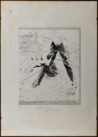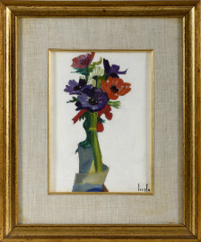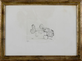Lotto di tre stampe e un olio su tela, XX secolo, misura massima cm 68,5x49, (difetti)
