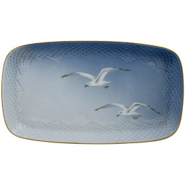 Lotto di un cofanetto ed un vassoio in porcellana Royal Copenaghen nei toni del bianco e dell'azzurro, XX secolo, misure massime cm 28x16