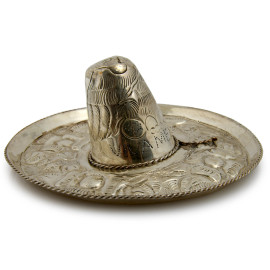 Lotto di un sombrero e cinque piattini in argento, misura cm , peso complessivo gr 260