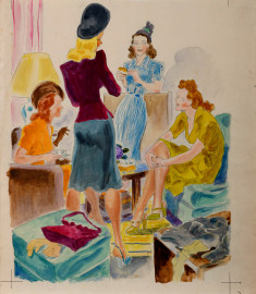 Luigi Bompard (1879 - 1953), Chiacchiere, tecnica mista su carta (recto e verso), cm 35x29 (lievi segni di usura del tempo)