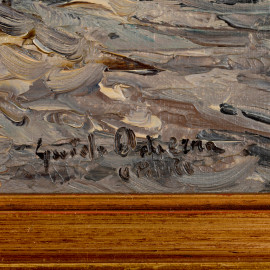 Marina con barca, ollio su tela, XX secolo, firmato in basso a destra G. Odierna, 41,5x51,5, entro cornice