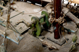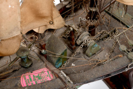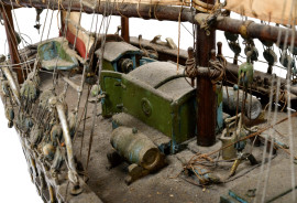 Modello di veliero in legno e tessuto, cm 118x134,x31 (difetti)
