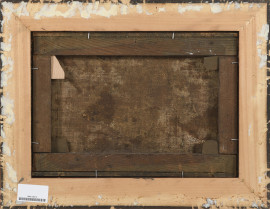 Natura morta di frutta e fiori in paesaggio, olio su tela, XIX-XX secolo, cm 26,5x38,5 entro cornice, (difetti e rotture)