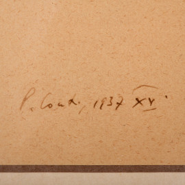 Nudo femminile, china su carta, firmato e datato "1937" in basso a sinistra, cm 22x432 compreso passepartout, entro cornice