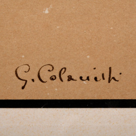 Nudo femminile in piedi, stampa su carta, cm 56x32,5 compreso passepartout (segni di umidità), entro cornice
