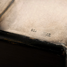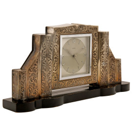 Orologio da tavolo Mauthe con struttura in legno e lamina in argento 800/000