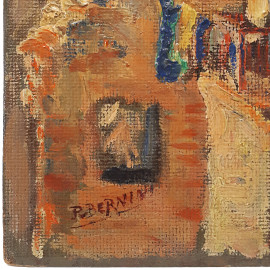 P: Bernini (XX sec.) Scorcio di Livorno, 1948, olio su faesite, cm 40x20, firmato, titolo e anno al retro