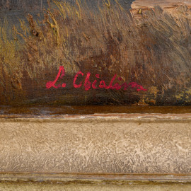 Paesaggio con pastorella e pecora, olio su tela, XIX - XX secolo, cm 50x70, entro cornice, firmato in basso a sinistra