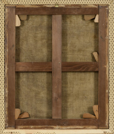 Paesaggio fluviale con cascata e figure, olio su tela, cm 78x65 entro cornice