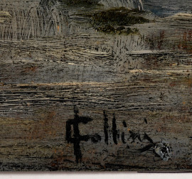Paesaggio fluviale,XX secolo, olio su cartone, cm 19,5x35, firmato in basso a destra, entro cornice