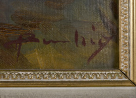 Pierrot con ballerina, olio su tela, cm 67,5x48 entro cornice, firmato in basso destra