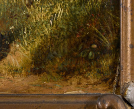 Pittore inglese del XIX secolo, Donne sulla riva di un ruscello, cm 33x42 entro cornice