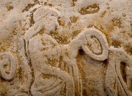 Placca in terracotta dipinta a finto marmo con rilievo di ispirazione classica, XX secolo, cm 34x42,5, (segni del tempo)
