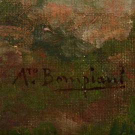 Rovine romane, olio su cartone, XX secolo, cm 45x35 entro cornice, firmato in basso a sinistra