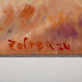 Salvatore Zofrea (1946-), Paesaggio allo Zomaro, olio su compensato, cm 60x50 entro cornice, firmato in basso a sinistra