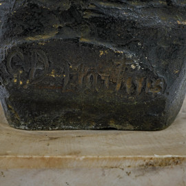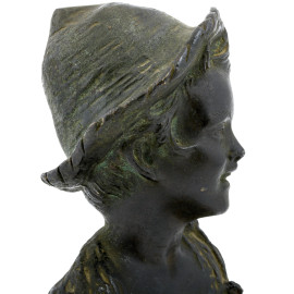 Scultura in bronzo con base in marmo raffigurante fanciullo con cappello, XX secolo, altezza cm 18,5
