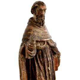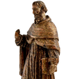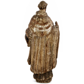 Scultura in legno dipinto e dorato raffigurante Santo, XVIII secolo, altezza cm 77, (cadute di colore, fessurazioni, rotture e mancanze)
