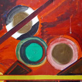 Seguace di Sonia Delaunay, seconda metà del XX sec., Composizione geometrica, olio su tela, cm 70x90, firmato