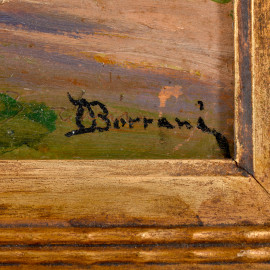 Sentiero di campagna, XX secolo, olio su cartone, cm 36x26, firmato in basso a destra, entro cornice