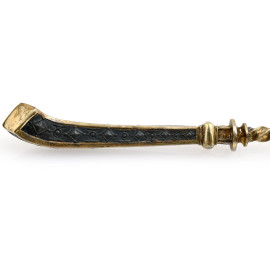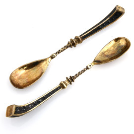 Servizio da gelato composto da cucchiaio e sei cucchiaini in argento vermeil e resina entro cofanetto in pelle, peso lordo gr 150, misura massima lunghezza cm 22