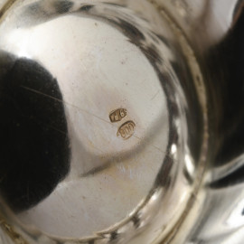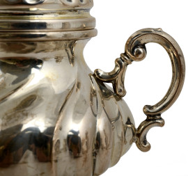Servizio in argento 800/000 composto da teiera, caffettiera, zuccheriera e lattiera, misure massime cm 20x26, peso complessivo gr 1225
