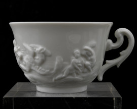 Servizio in porcellana bianca Ginori con motivi floreali a rilievo composto da: