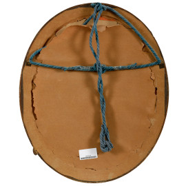 Specchiera ovale in legno dorato e intagliato con rose a rilievo in stucco, XX secolo, cm 58x49, (cadute di doratura, sbeccature)