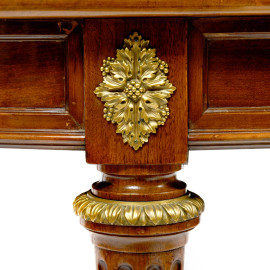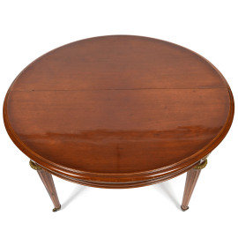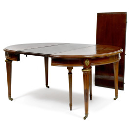 Tavolo tondo in noce allungabile con due prolunghe di larghezza cm 51 cadauna, Francia, XX secolo, cm 64x106x106(difetti)