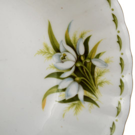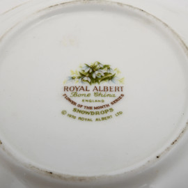 Tre ciotoline in porcellana Royal Albert bianche a motivi floreali con nomi dei mesi, XX secolo, diametro cm 14