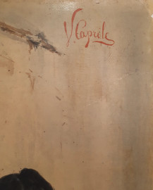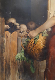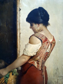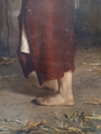 Vincenzo Caprile, Pastorella, grande oleografia su carta, cm 98x44, lievi restauri