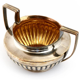 Zuccheriera in Sheffield e vermeil, XX secolo, cm 10x16x13,5