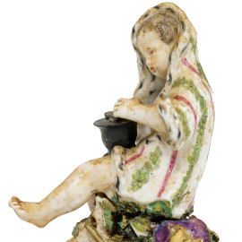 Allegoria dell'Inverno, scultura in porcellana policroma, vecchia manifattura, cm h 16, (difetti)