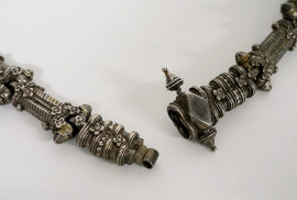 Cinta in metallo argentato, manifattura orientale, lunghezza cm 75, peso gr.313
