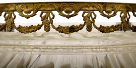 particolare decorazione a ringhiera nella parte superiore in metallo dorato con ornato a candelabre e festoni.
