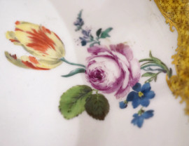 decorato a mazzetti di fiori, con profilo mistilineo dorato.