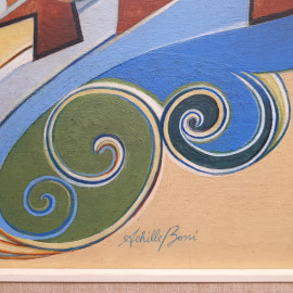 Achille Boni (XX sec.) Aeropittura, olio su tavola, cm 29,5x38,5, firmato, con cornice