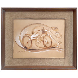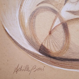 Achille Boni (XX sec.) Velociclo futurista, tecnica mista su cartone, cm 23x30, firmato, con cornice