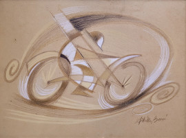 Achille Boni (XX sec.) Velociclo futurista, tecnica mista su cartone, cm 23x30, firmato, con cornice