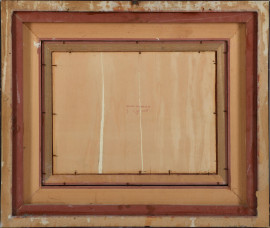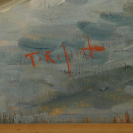 Barche sulla costa, XX secolo, olio su compensato, cm 30x40, firmato in basso a sinistra, entro cornice