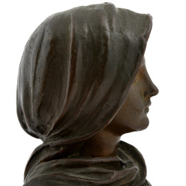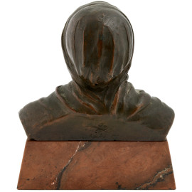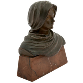 Busto di ragazza velata in bronzo con base in marmo, XX secolo, altezza cm 18,5, firmato al retro