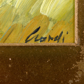 Buttero a cavallo, XX secol,o olio su compensato, cm 20x11,5, firmato in basso a sinistra, entro cornice