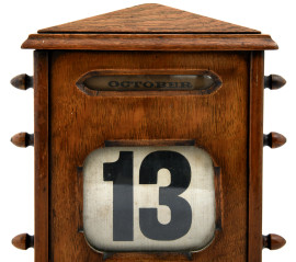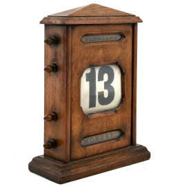 Calendario da tavolo in legno. Inghilterra, XX secolo, cm 26,5x19,5x8, (lievi segni di usura)