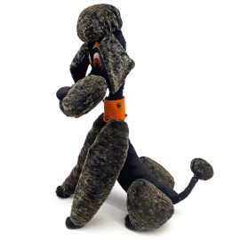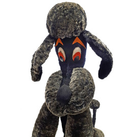 Cane giocattolo vintage in peluche con imbottitura in paglia, produzione italiana anni 50, altezza cm 55