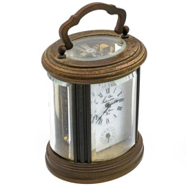 Cappuccina sveglia L'Epèe in bronzo con quadrante a smalto a numeri romani, cm 11x6,5x5,5, (da revisionare)
